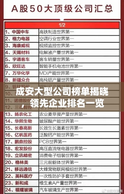 随着经济的快速发展,成安地区的大型公司日益崭露头角,其在行业内的地位与影响力不断提升,本文将为您详细介绍成安地区的大型公司排名,带您了解这些企业的风采。